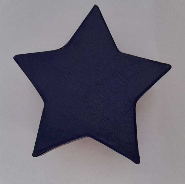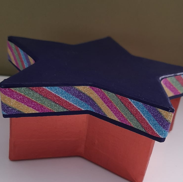 Star shaped gift box, decorated with acrylic paint and rainbow sparkle.