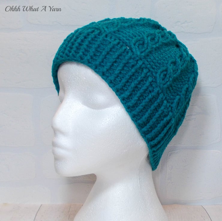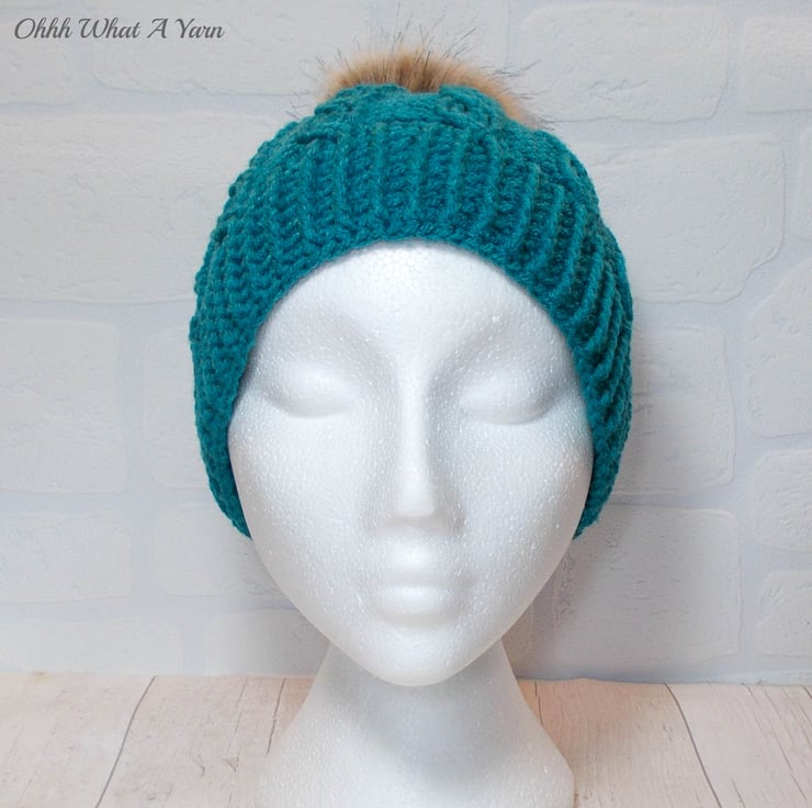 This cosy hat is crocheted using gorgeous premium 100% acrylic yarn in a gorgeous teal colour.