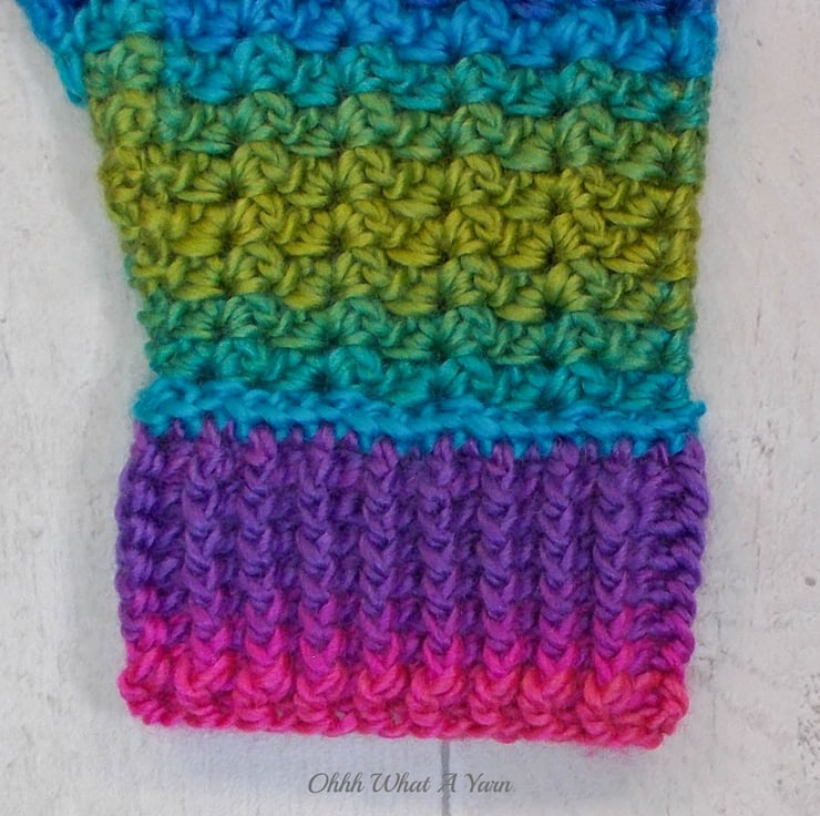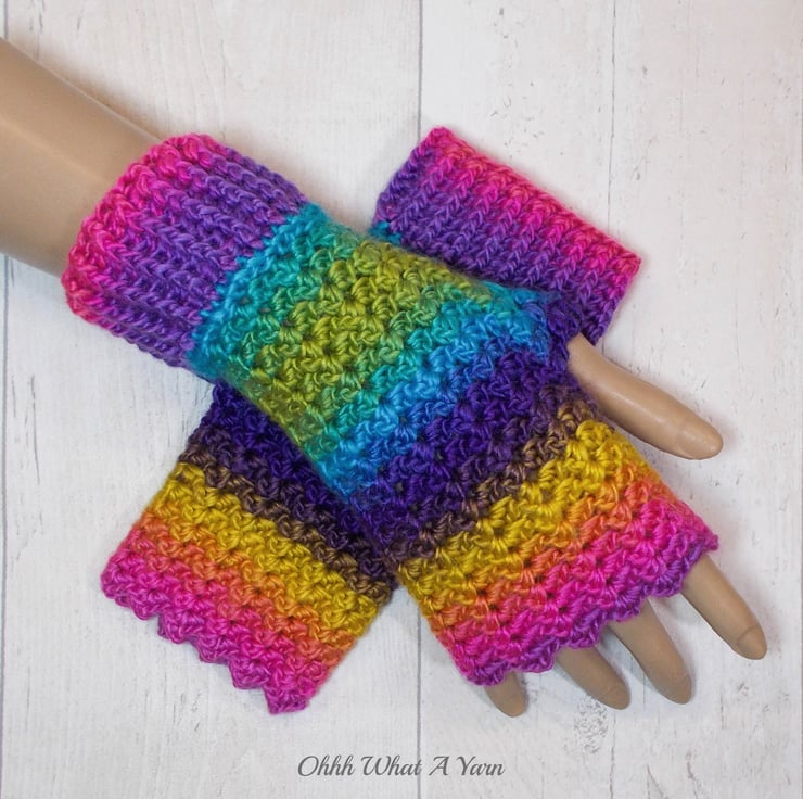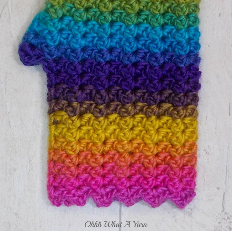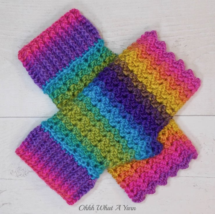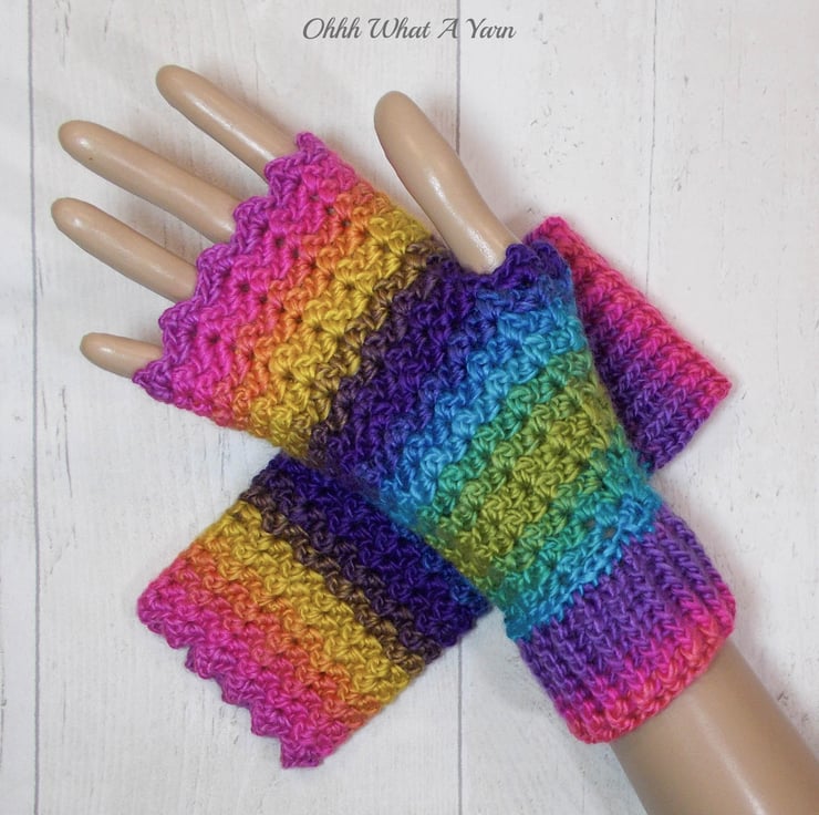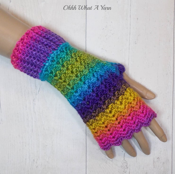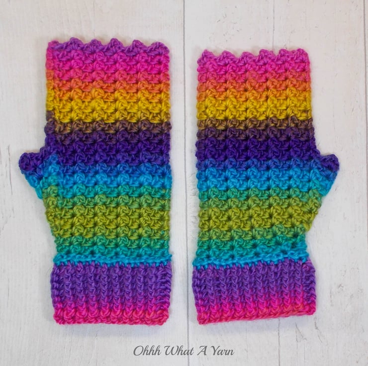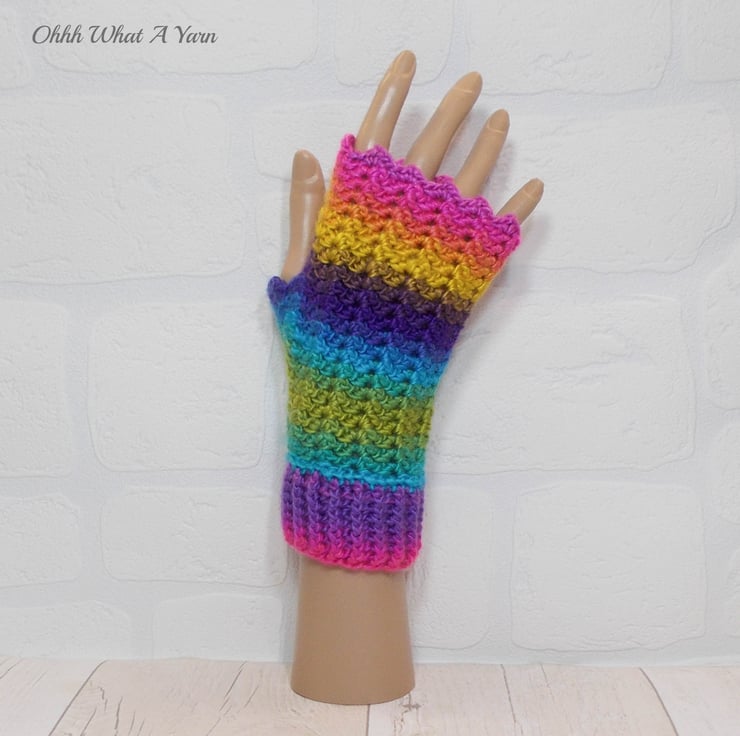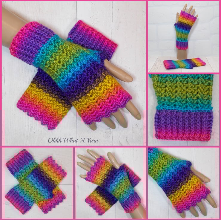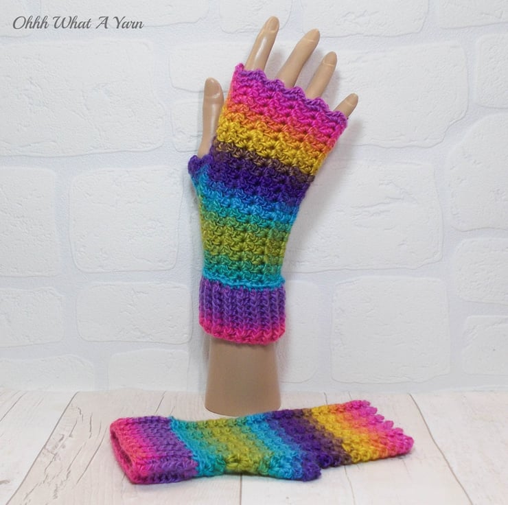 They are crocheted using 100% acrylic colour changing yarn in bright rainbow shades.
