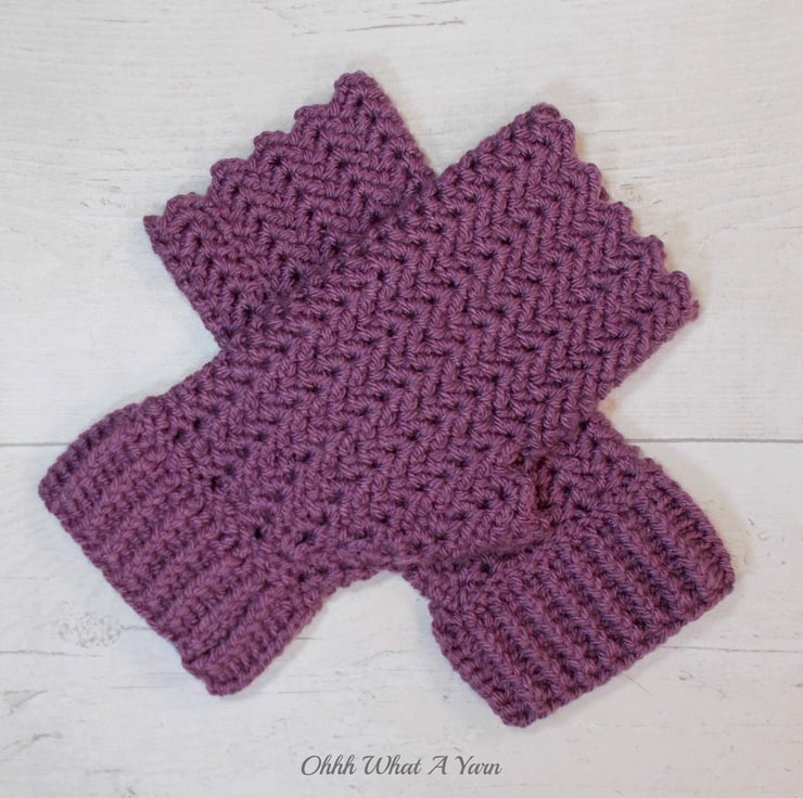 They are crocheted using 100% acrylic yarn in a beautiful mauve/grape colour.