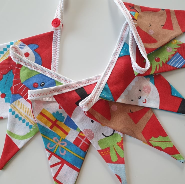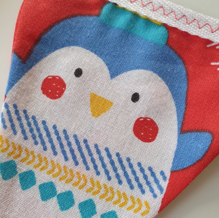 Made from a really lovely bedding set, this garland has all the Friends you could wish for. Penguins, reindeer, snowmen and of course, Santa!