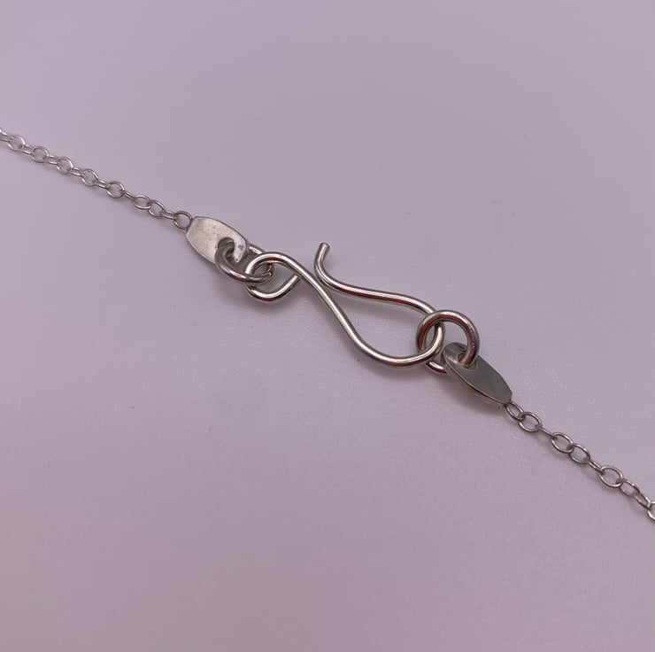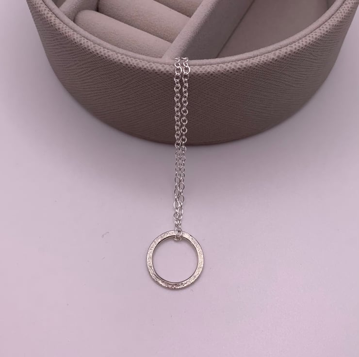A subtly textured ring of silver decorates this 18 inch chain with shepherds hook clasp.