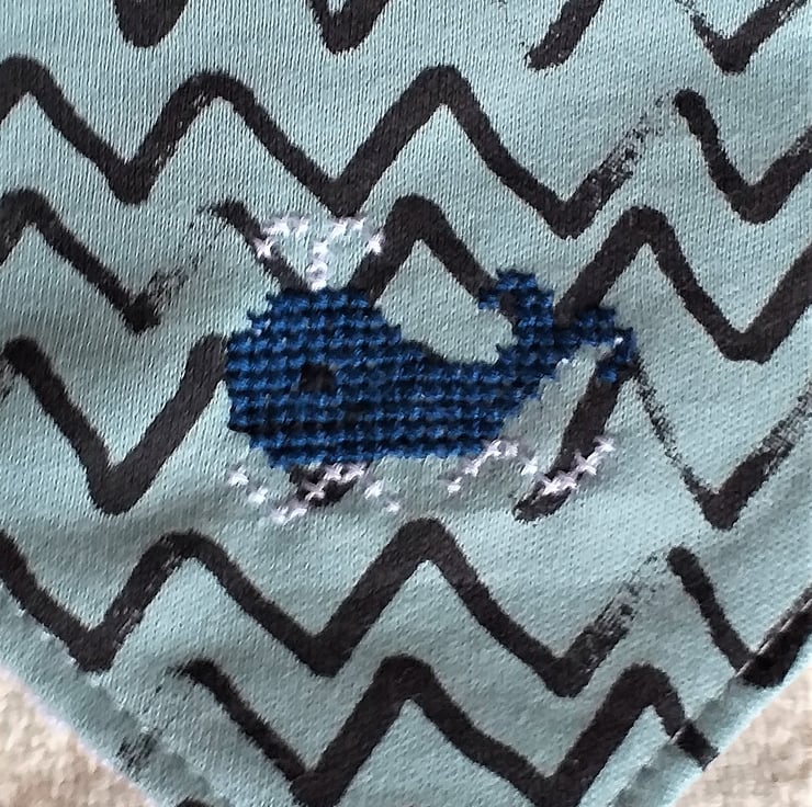 The black wavy lines on this sea-coloured bib just asked for a whale to be ploughing through them!