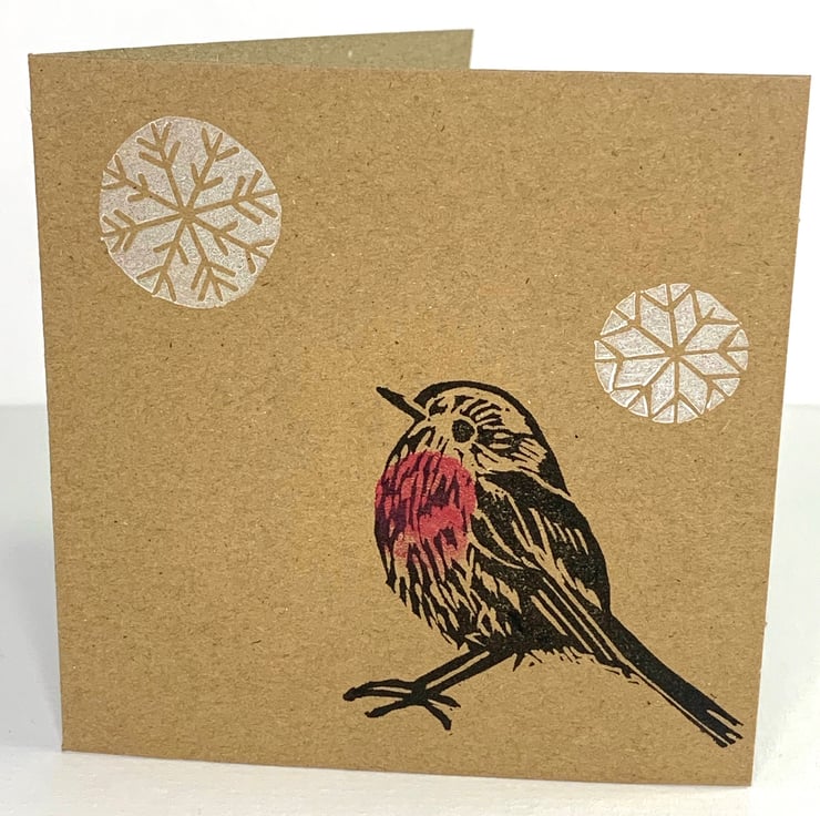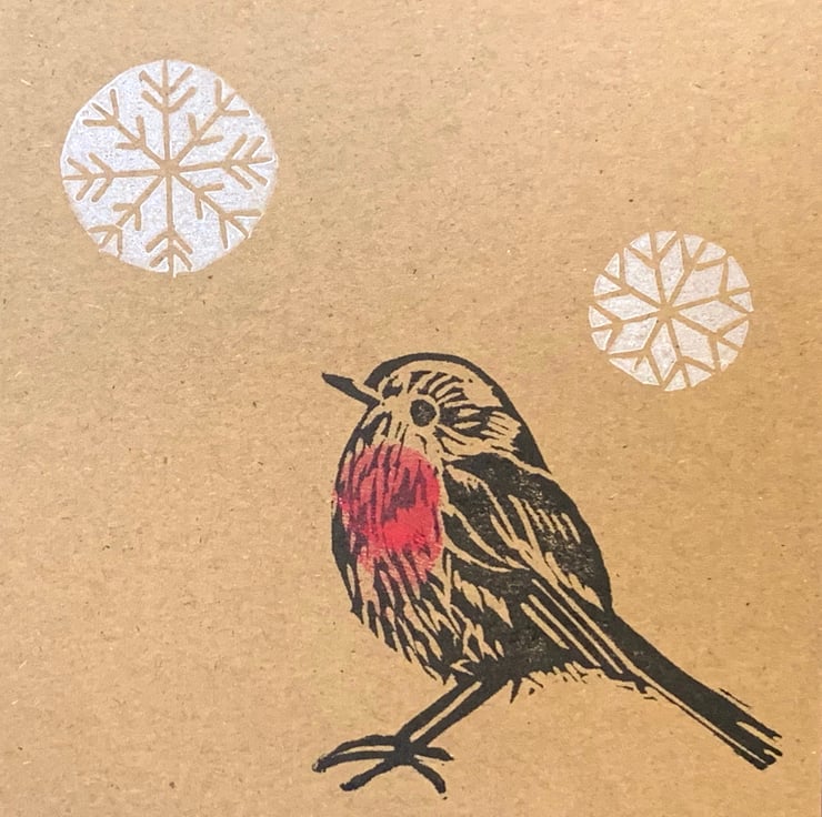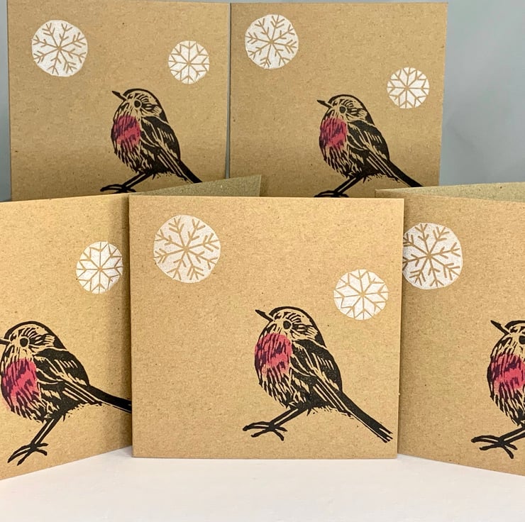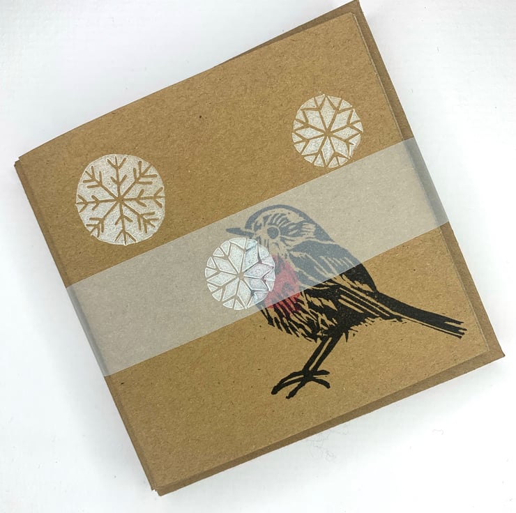 Pack of 5 Christmas cards with envelopes. Robin and snowflake design.