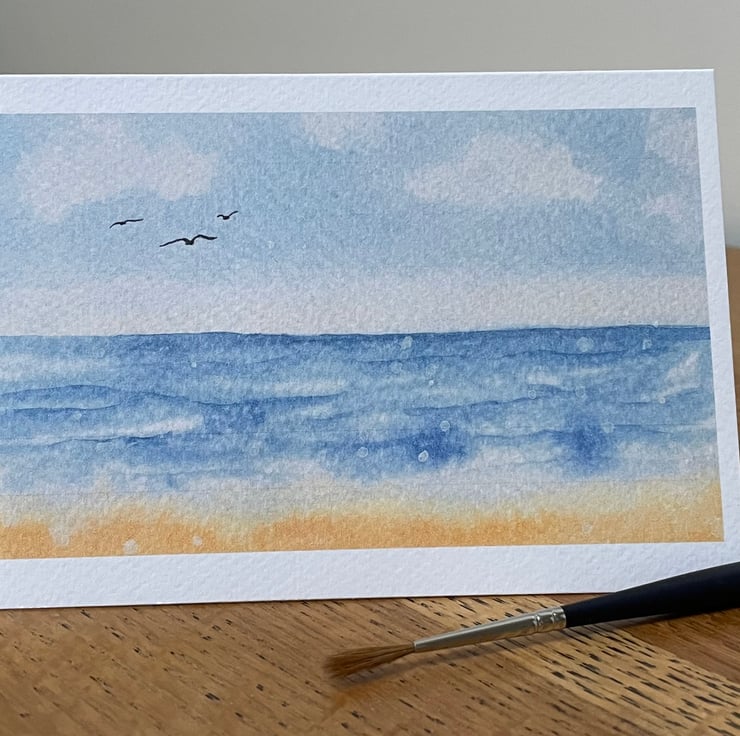 This is a happy little print made from an original water colour painting of mine called 'Seaside' it makes me think of sunny days on the beach when I was a child.
