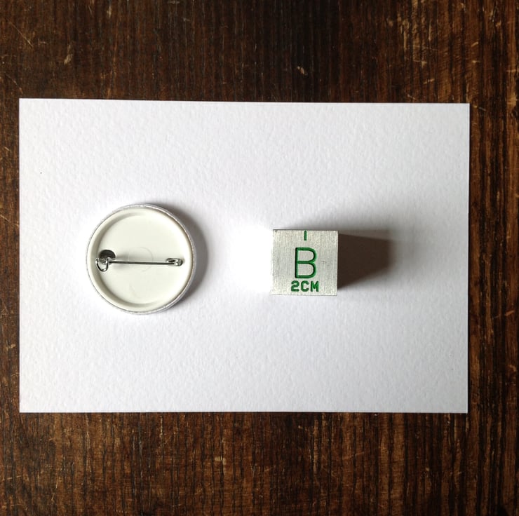 Our badges are 38mm in diameter, which is about the size of a 50p coin. They are hand produced in our studio in Leicestershire using quality manufactured components.