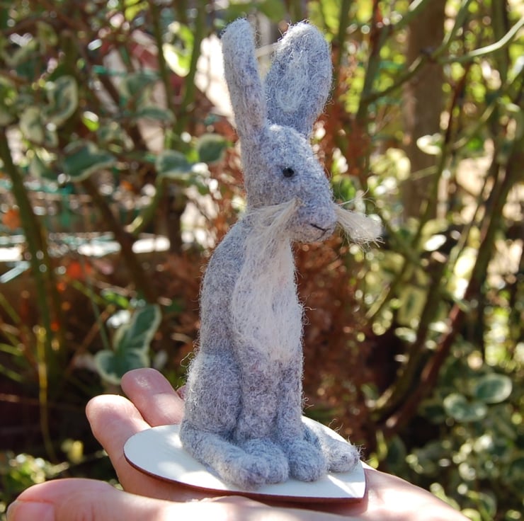 I have made this beautiful hare using 100% wool fibres which I have stabbed with a needle into this beautiful hare.