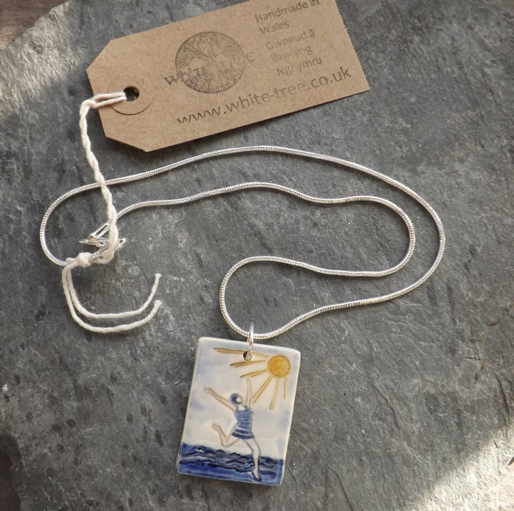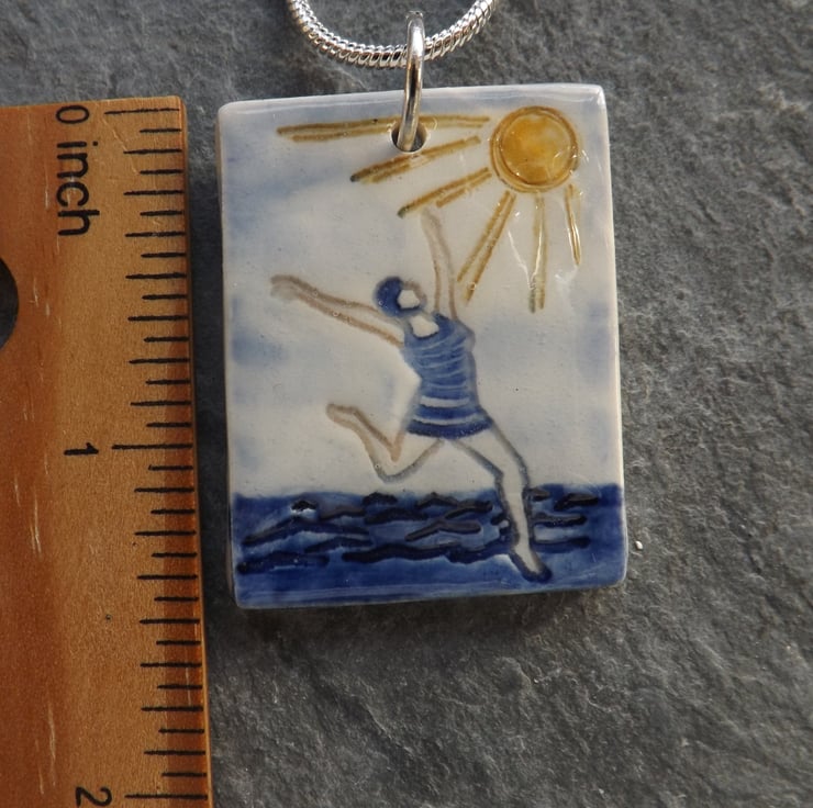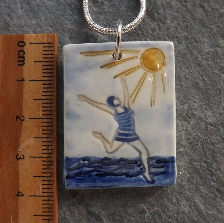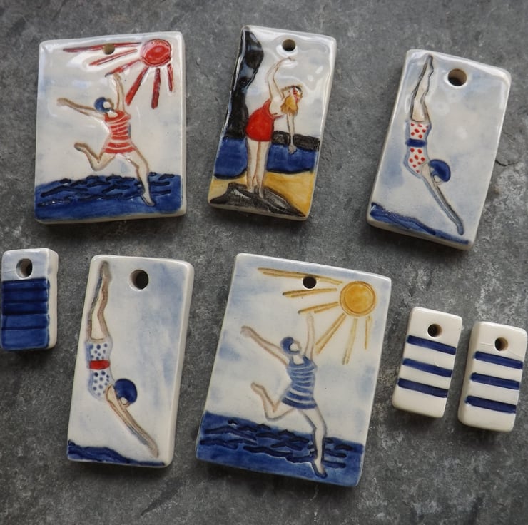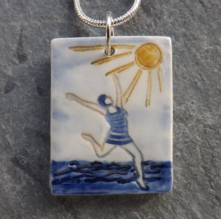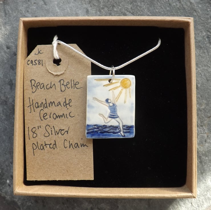 This pendant is from a range of seaside themed ceramic accessories, celebrating my love of swimming, the beach and sunny days.