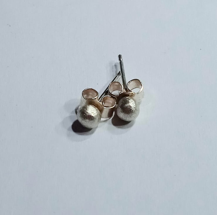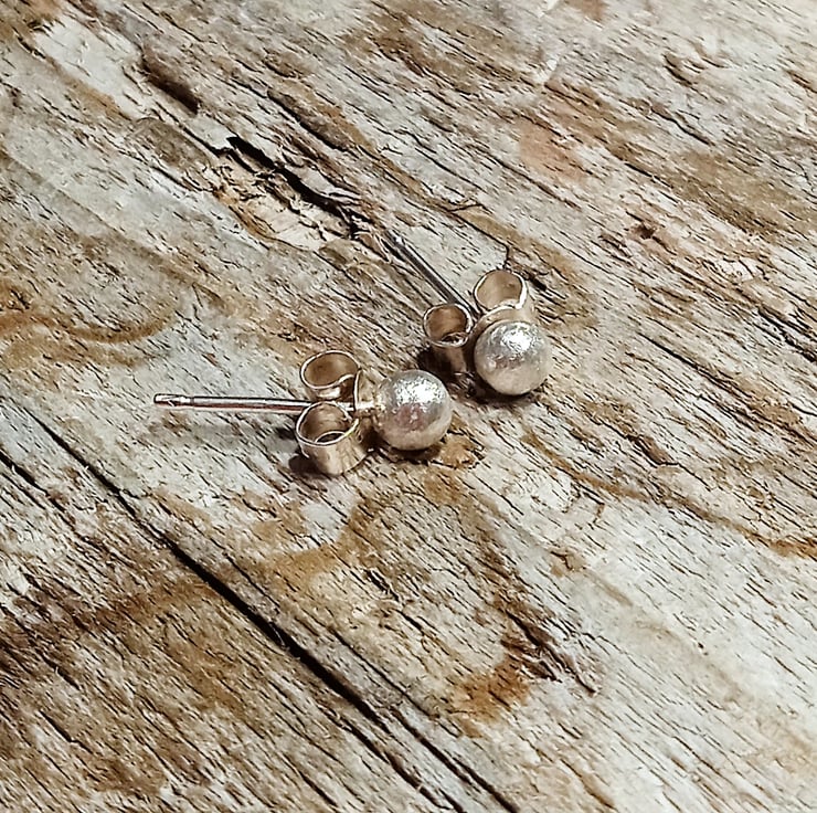 I have created these beautiful little stud earrings from reclaimed sterling silver which I have formed into a ball shape through heating and have given them a frosted style textured finish.
