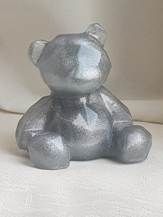 Bear is approx 6.5cm high, made of Resin coloured with a Simply Silver tone pigment.