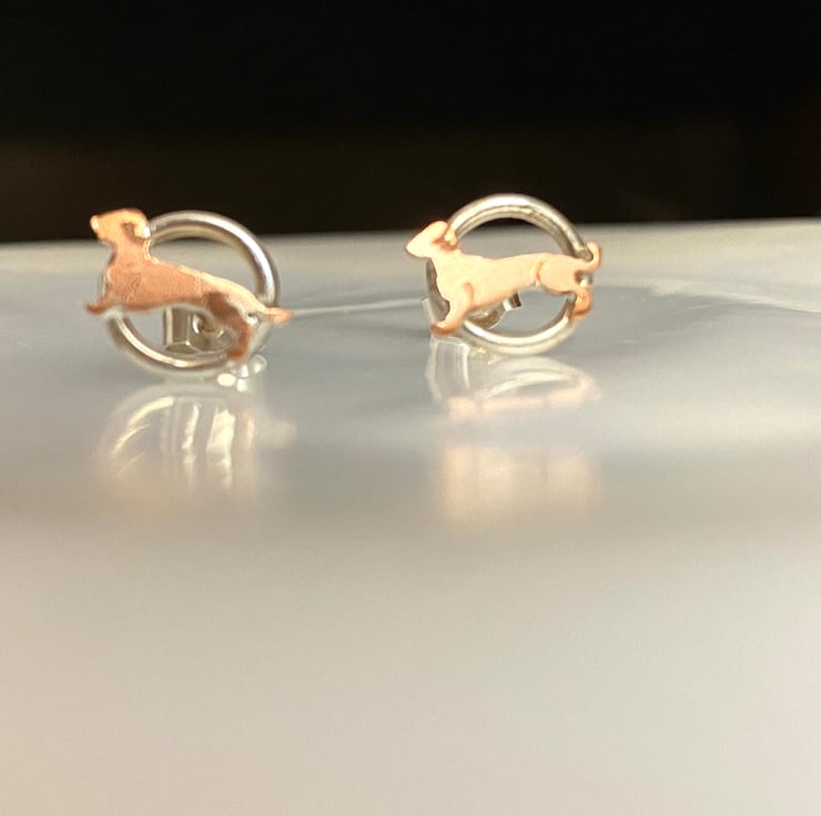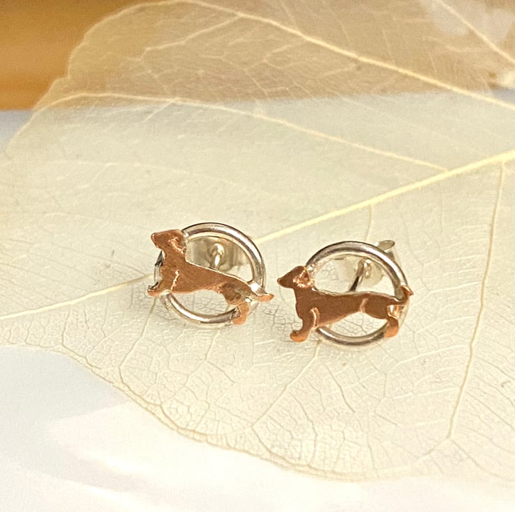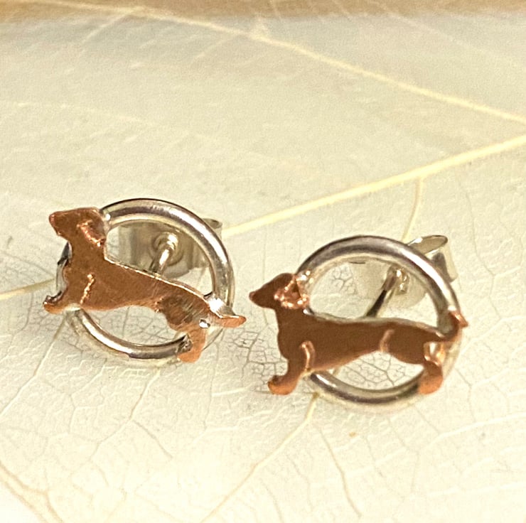 Dachshund Silver and Copper Stud Earrings - silver, post earrings Dog Lover Silver Copper Stud Earrings - silver, handmade, post earrings suitable for an adult.