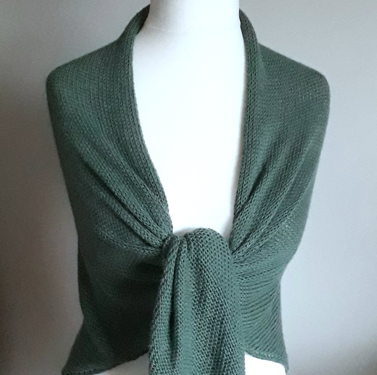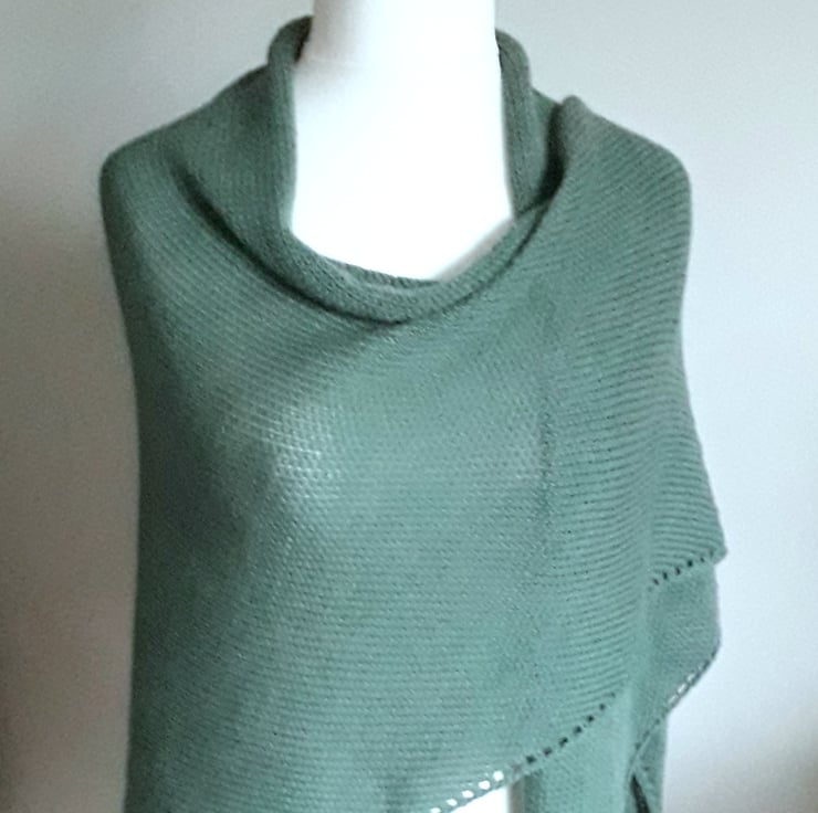 This large triangular wrap is knitted from beautifully soft Alpaca wool. It is large enough to wear in a variety of ways and features pretty eyelets along two sides for a decorative finish.