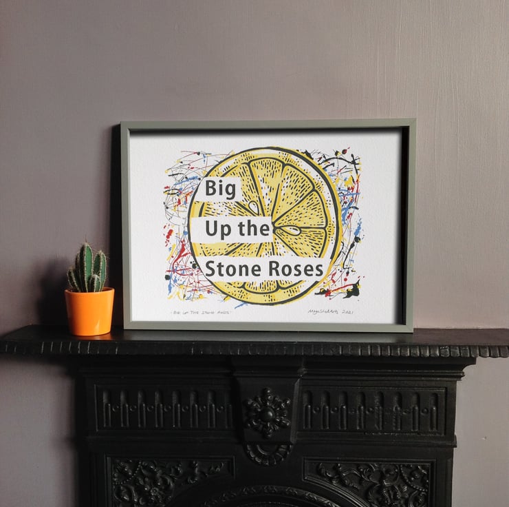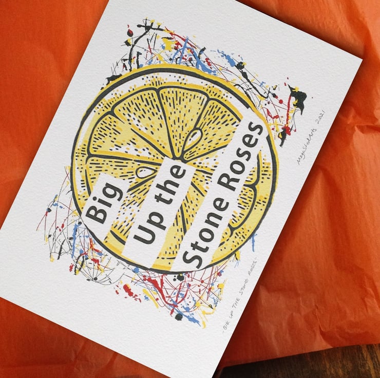 This listing is for a digital wall art "Big Up the Stone Roses" print, inspired by former BBC6 Music presenter Shaun Keaveny's Cart Wall. Lets face it since his departure from his regular radio shows of the past 14 years we've all been needing some additional Cart Wall silliness in our lives. If badges aren't cutting enough positivity to see you through these dark times then treat yourself to a lovely A4 print, hang it in your favourite spot and enjoy feeling like the community garden is still very much thriving!