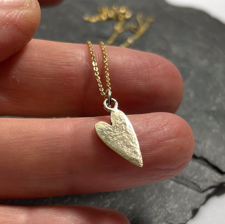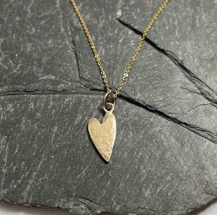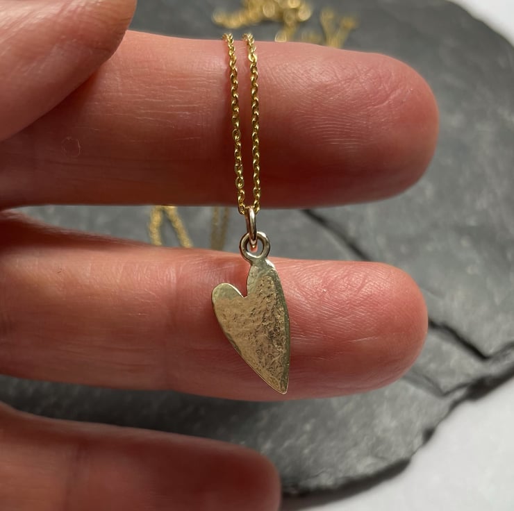I have hand cut a simple stylised heart from gold sheet, it has a hammered textured on the front.