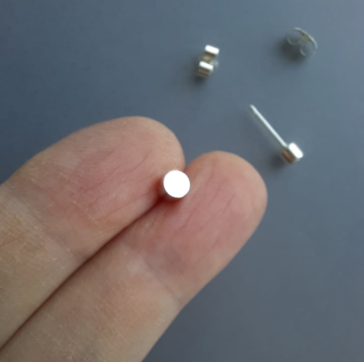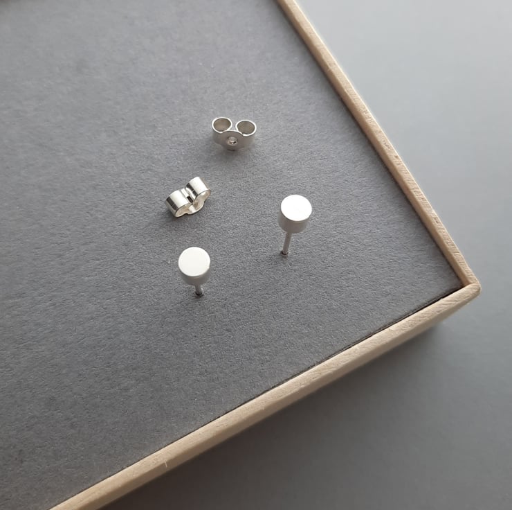 Handmade from Sterling silver, the dots measure 4mm in diameter and come with Sterling silver butterfly backs.