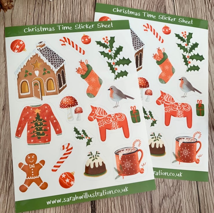 17 illustrated Christmas themed stickers to brighten up your planner, notebook, scrapbook or whatever you like.