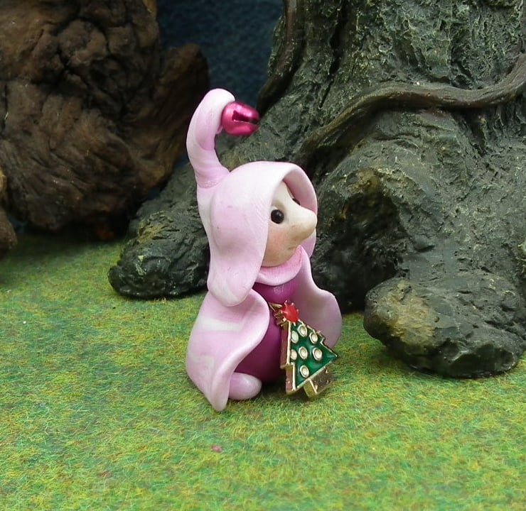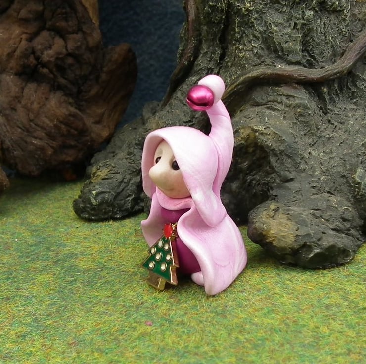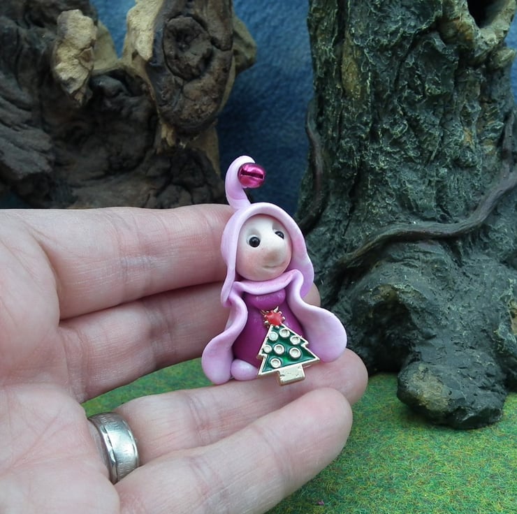 Kyz is a tiny Christmas Gnome with her enamel tree ...