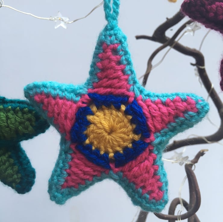 Set of 3 hand-crafted crochet Christmas or Winter Solstice tree decorations