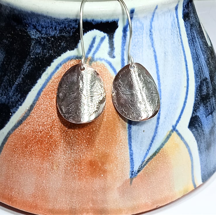 The drops measure approximately 19 x 16 mm and I have hung them from sterling silver earring wires which I have also created.
