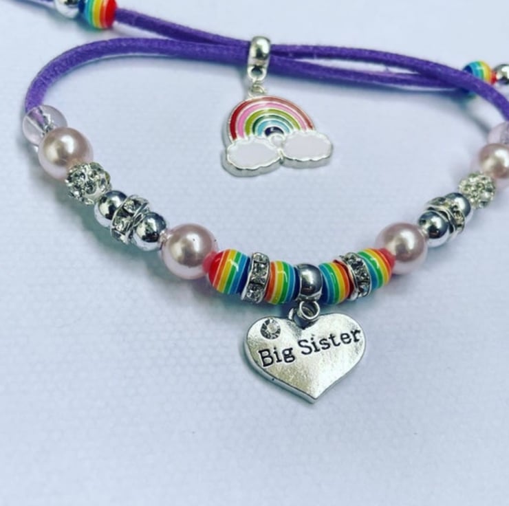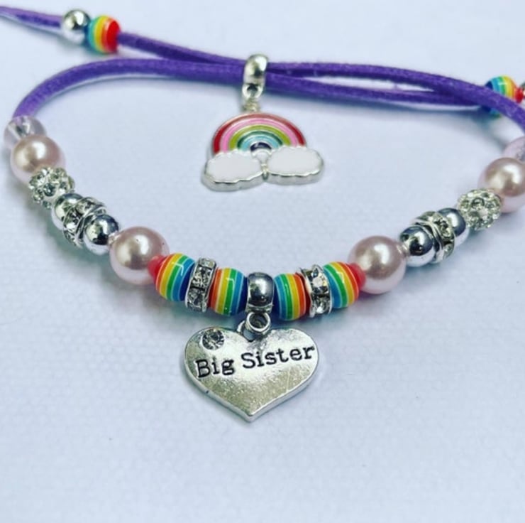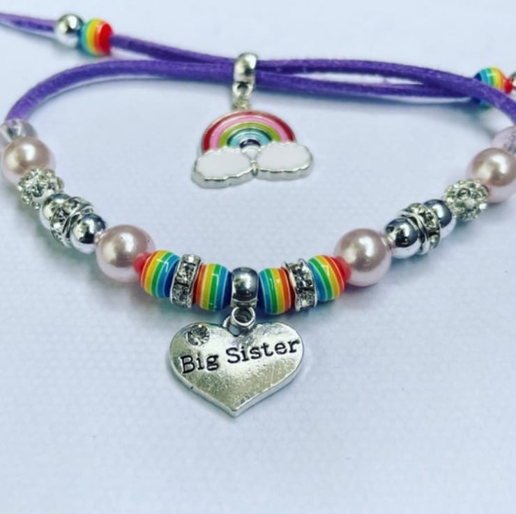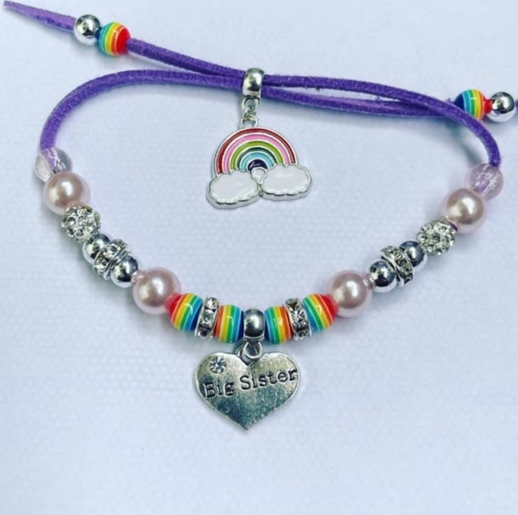 Suede effect corded big sister bracelet with Shamballa and rhinestone bead detail