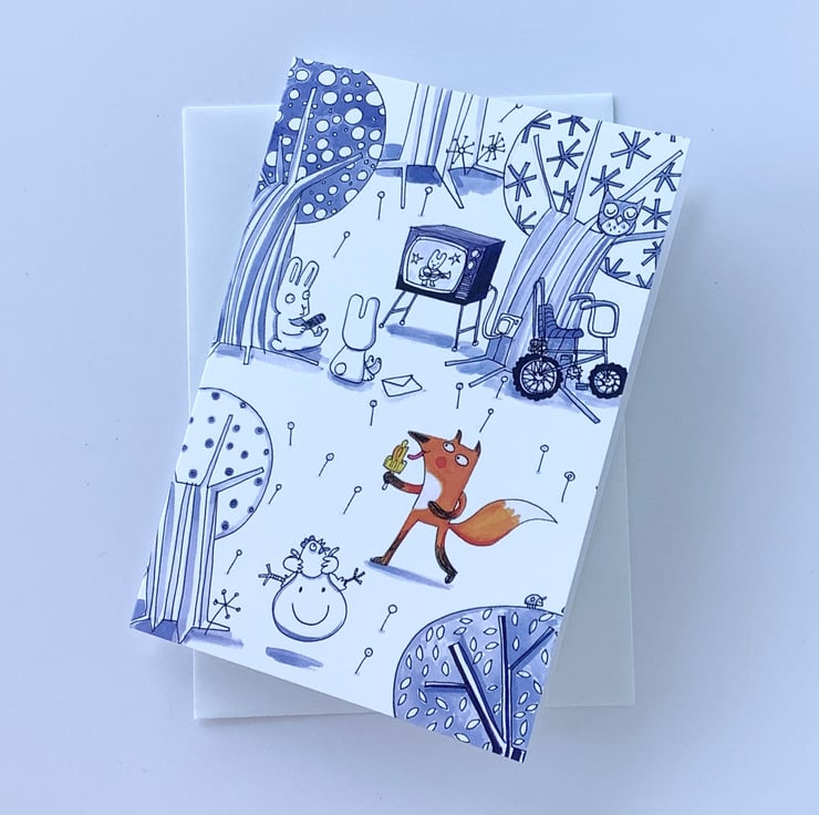 Cards are silk finish, 10.5cm x 14.8cm card, with white envelope and Jo Brown cat logo on back. Packed in a letterbox size box.