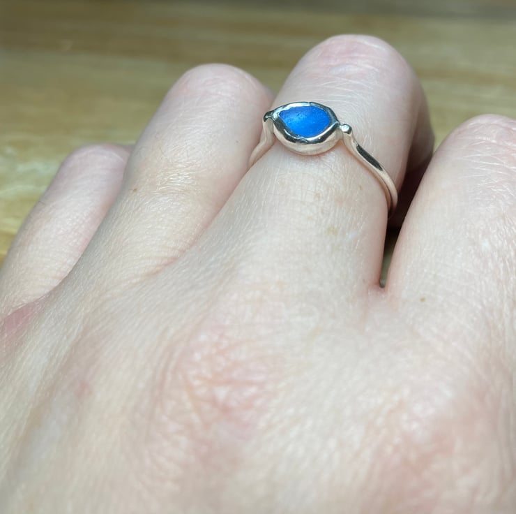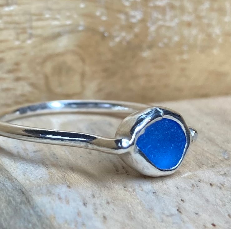 Stunning handmade Sterling and fine silver ring with a beautiful piece of cornflower blue welsh sea-glass collected from a North Wales beach. Has been Hallmarked at the Assay Office for authenticity of the precious metals. UK ring size O, for a simple way to measure your ring size please see pictures.