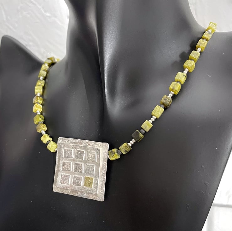 The jade cube beads are approx. 4mm square, the pendant measures. 28mm.