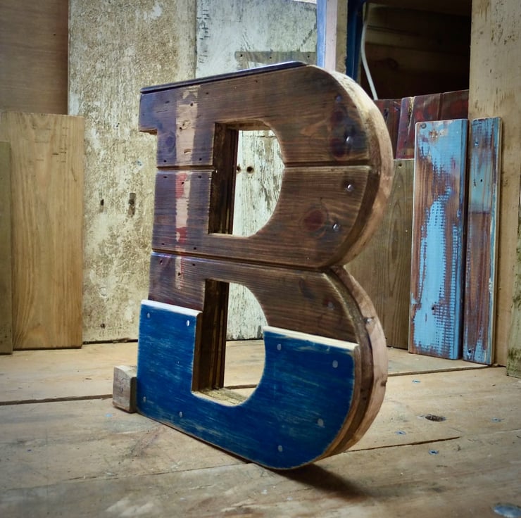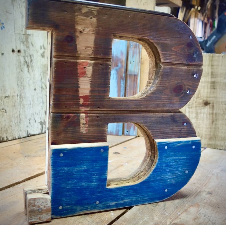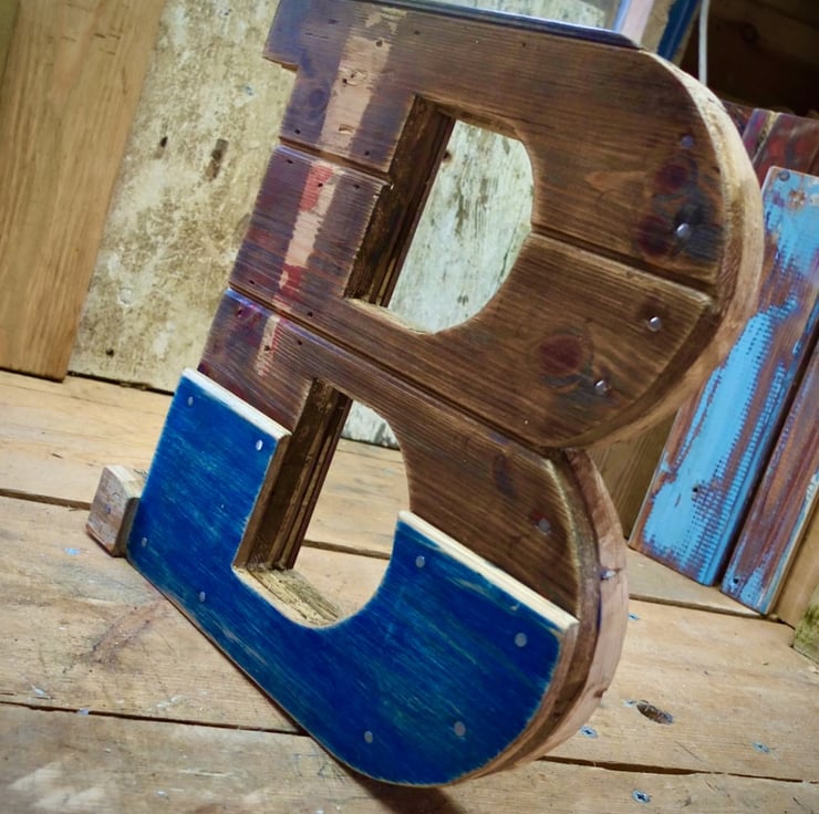 Handmade in the style of old wooden signage, each of our reclaimed & rustic wooden letters is unique because it's constructed using a variety of the different timbers we've reclaimed whilst restoring our ancient Devon farm. Hand sanded and finished in wax, this wooden letter is constructed from a variety of different reclaimed pine boards and measures 345mm tall, 325mm wide, 46mm thick.