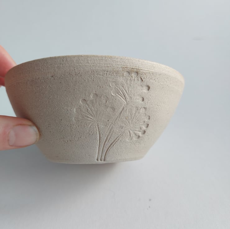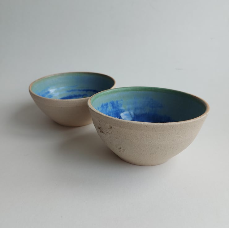 This ceramic bowls are made from stoneware pottery which means it is very durable. The clay gives a nice texture on the outside and I've added a flower impression for added interest. The lead free glazes applied to the inside gives a lovely contrast.