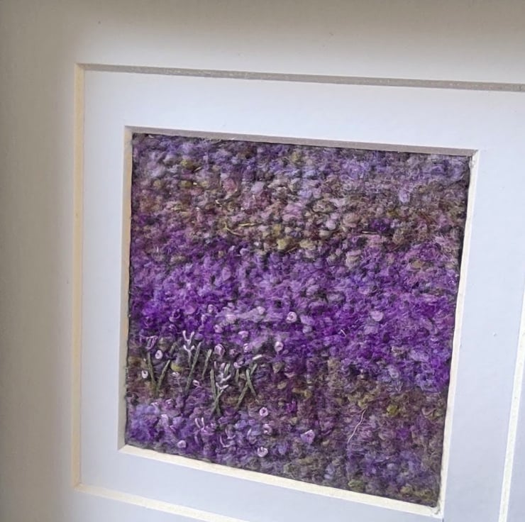 A one-of-a-kind textile artwork, inspired by my walk in lavender fields just before harvest.