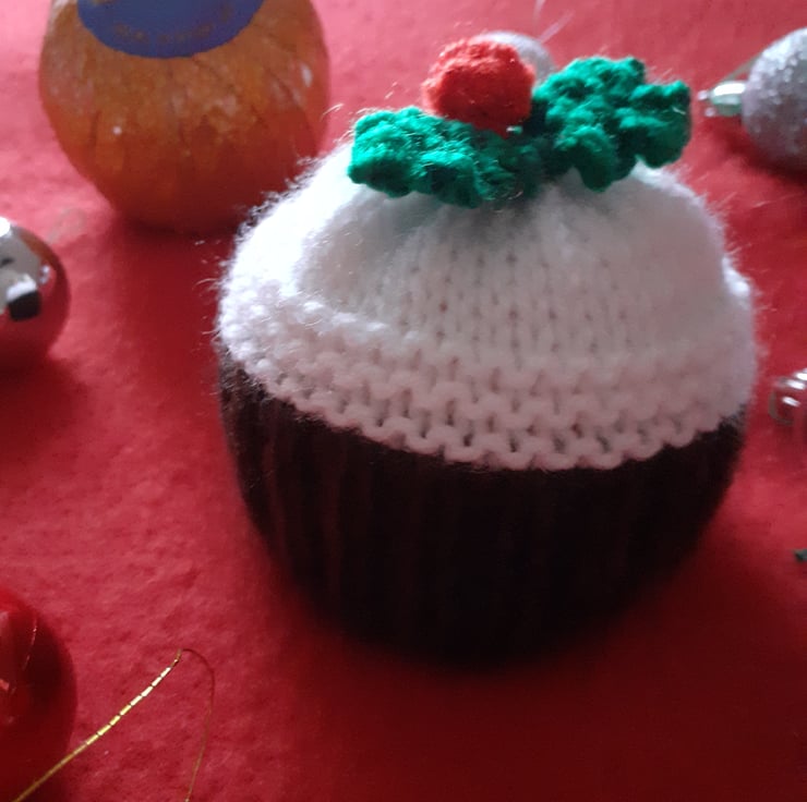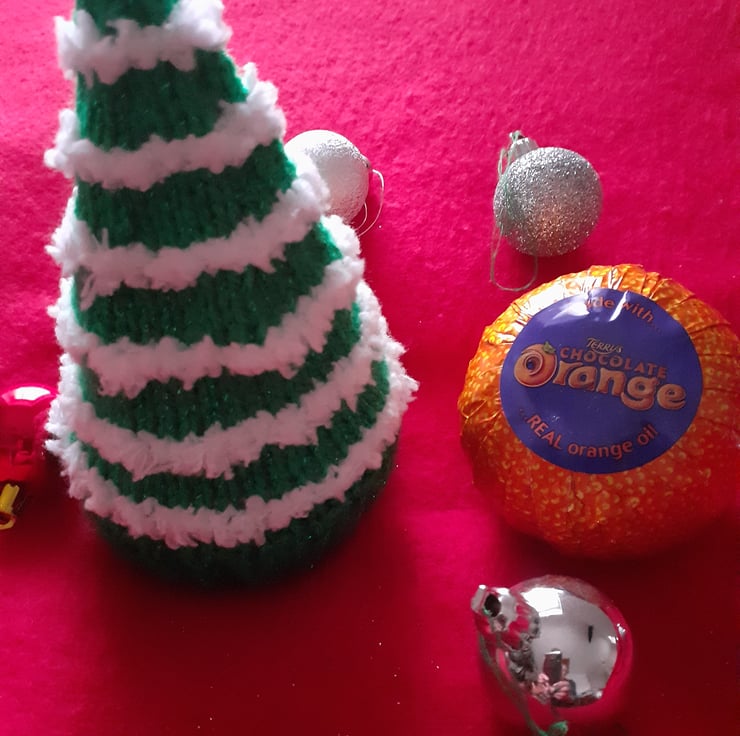 A hand knitted CHRISTMAS PUDDING terry's chocolate orange cover.
