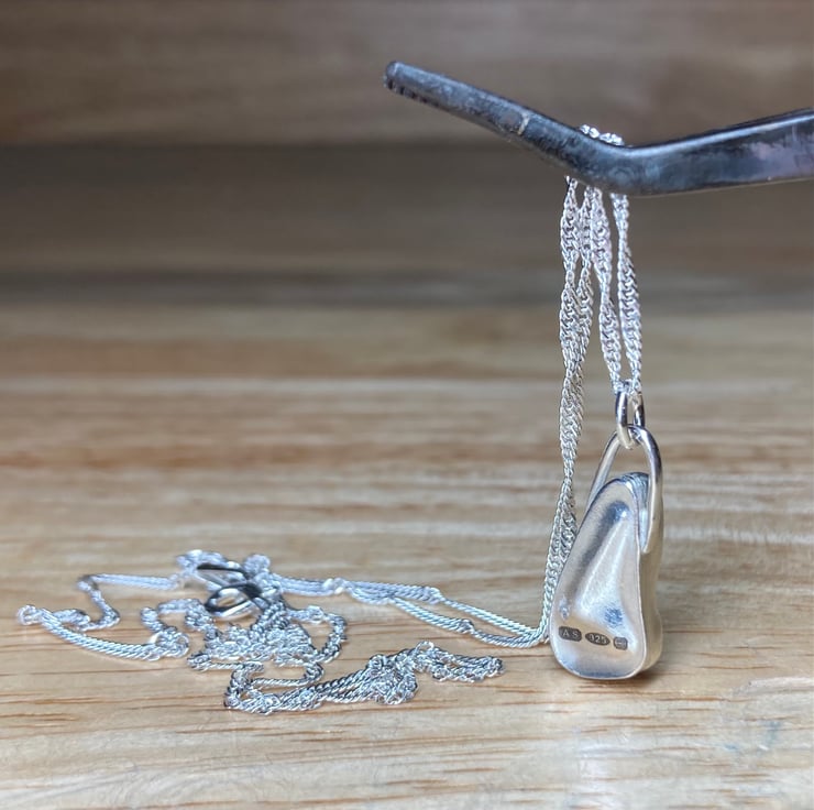 Stunningly unique handmade fine and Sterling silver pendant which features a beautiful soft green coloured welsh sea glass collected from a North Wales beach. This piece has been officially hallmarked at the Assay Office for authenticity of the precious metal. The pendant hangs on an 18’’ length 1.5mm thick Sterling silver twisted curb chain. Longer or shorter chains available upon request, please leave a note on ordering.