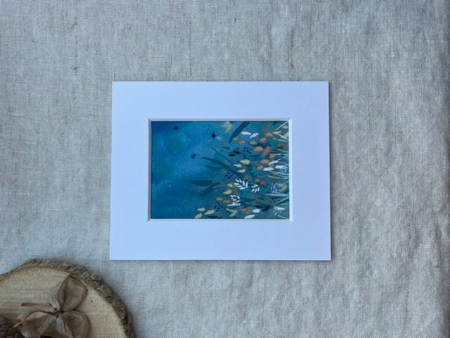 A beautiful mini piece of artwork which comes mounted in a white mount.