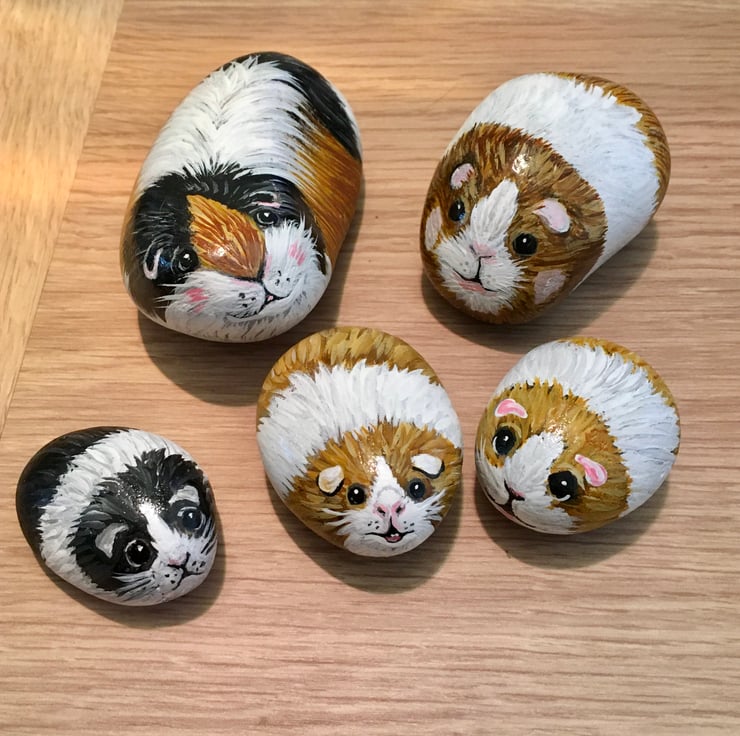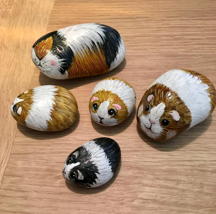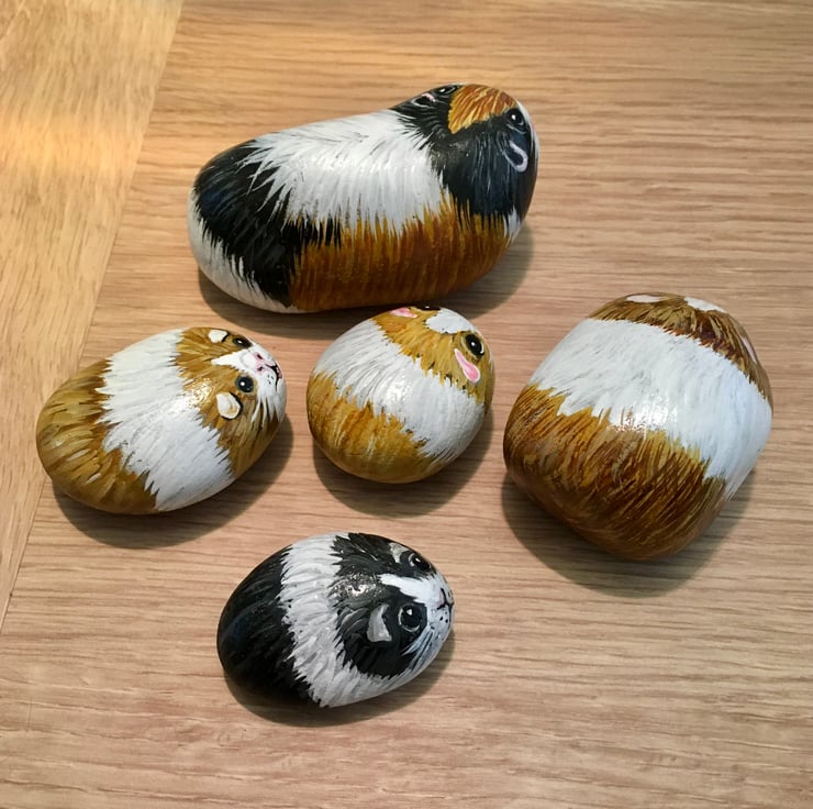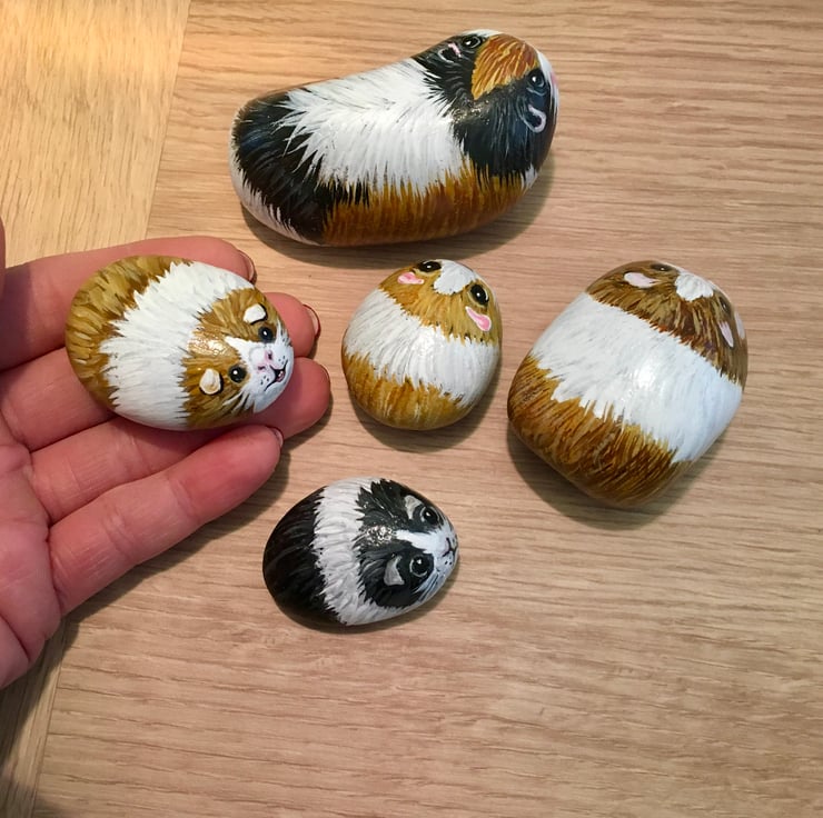 These Guineapigs have been painted onto smooth stones and glazed for a glossy protective finish