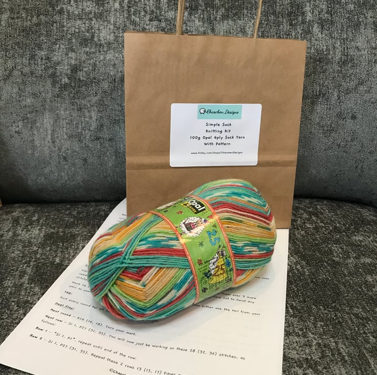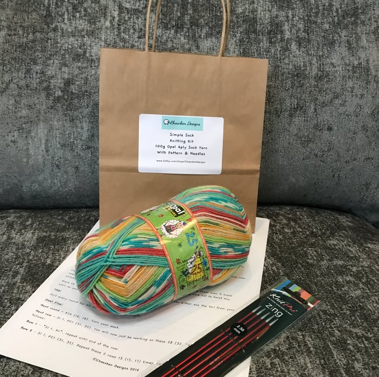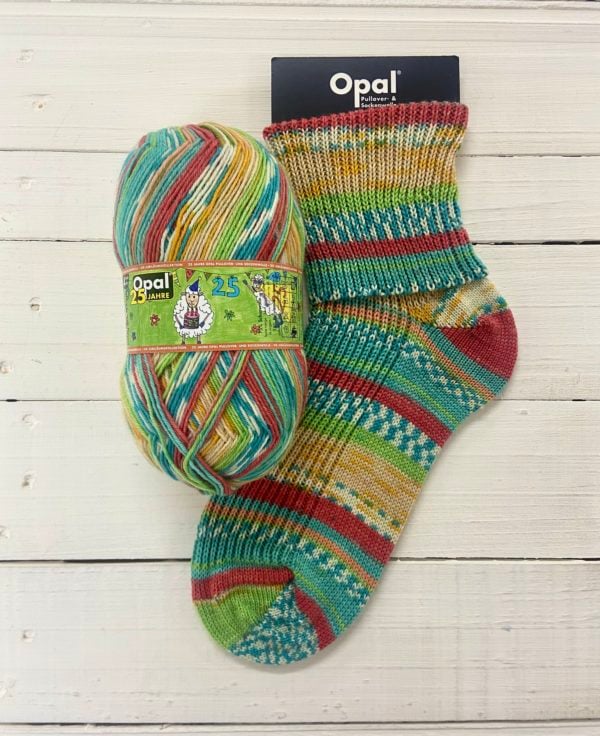 This Simple Knitting Kit is made up of a ball of Opal 4 ply yarn from the 25 Years Anniversary Range (11041 - Colourful Superpower) and a free pattern to make a lovely pair of socks!