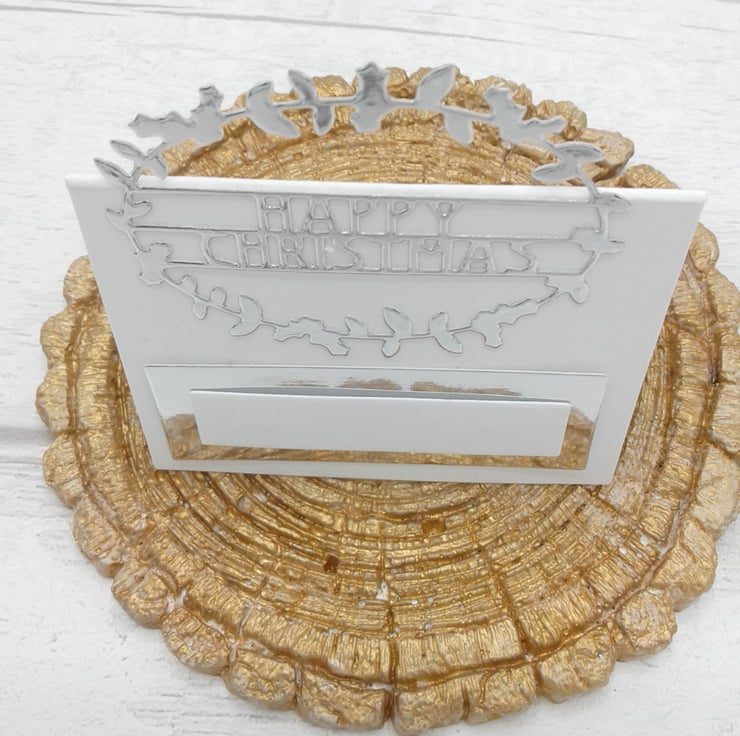 Christmas place settings. Set of 10 luxury Christmas place cards. White & silver