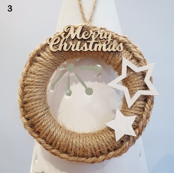 Natural jute twine wooden hoops decorated with little white wooden stars in random designs. A lovely minimalist design that will match any colour scheme!