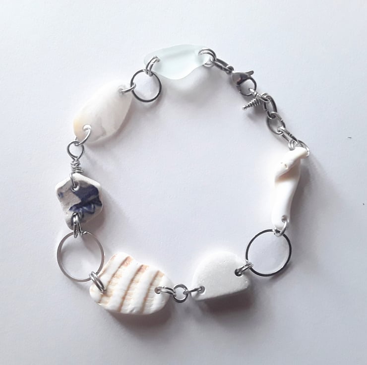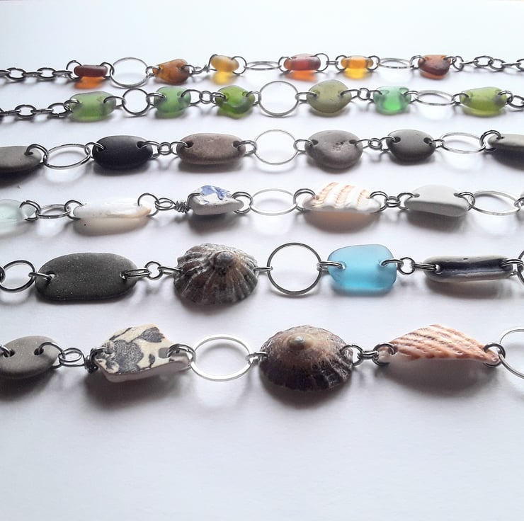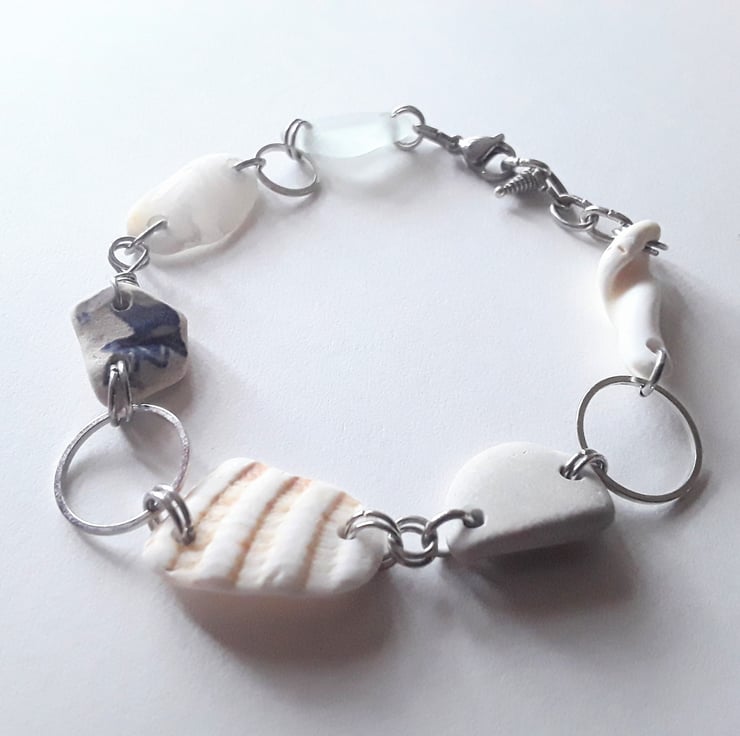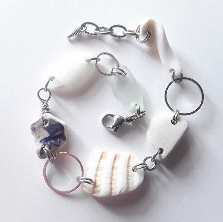 This beach inspired linked bracelet has been made using bits and pieces I found on the uk shores.