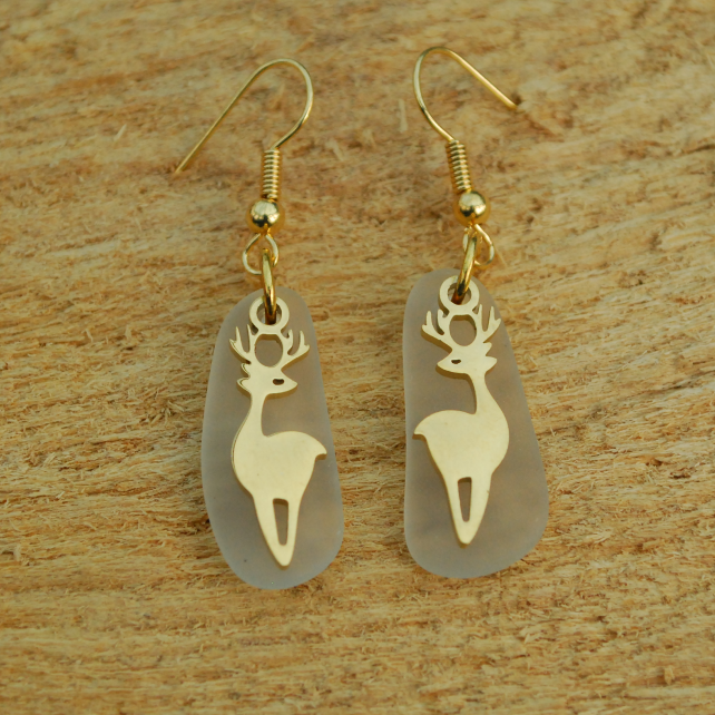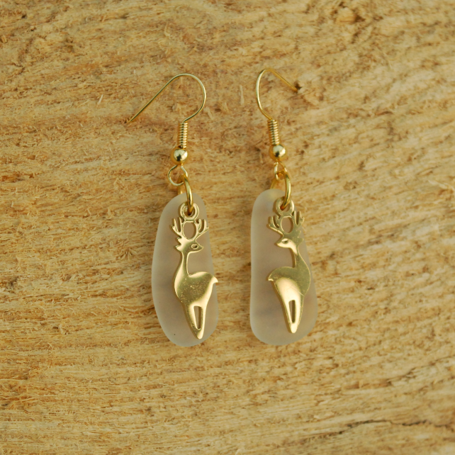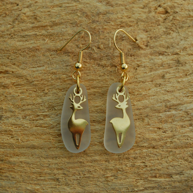 We've made these elegant earrings from a beautifully matched pair of pieces of beach glass. The tumbled glass is finely frosted and is the perfect backdrop for the pretty gold plated charms.