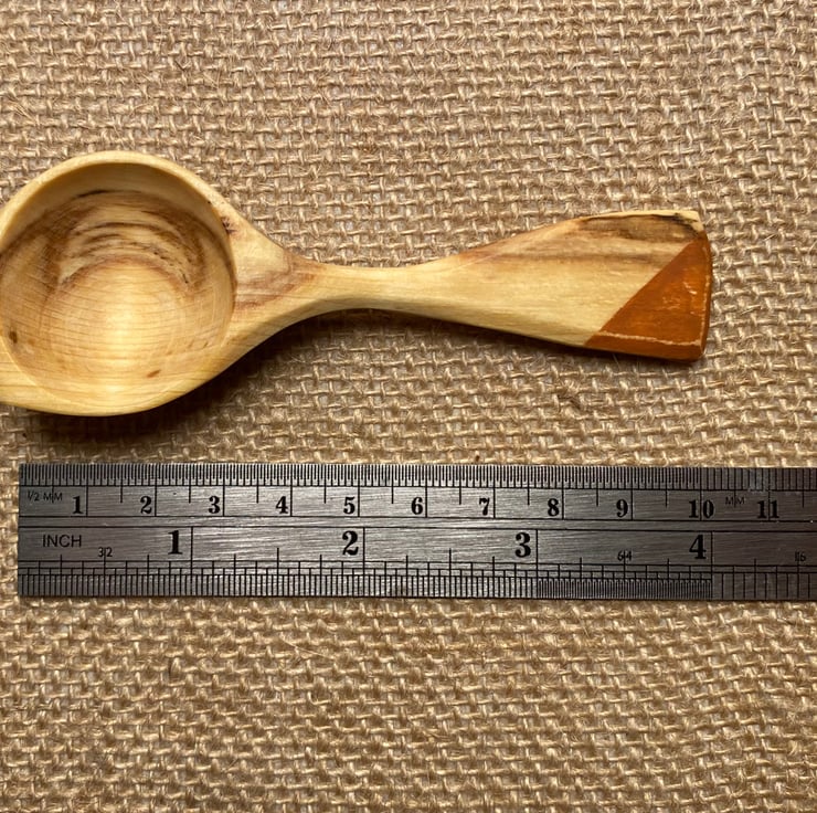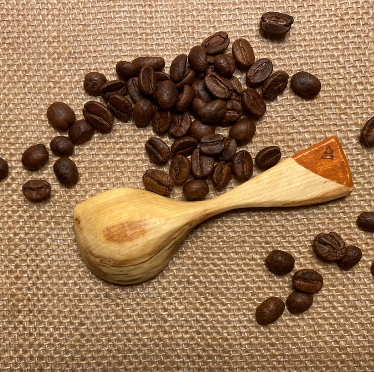 A striking spalted beech wood scoop with a lunar shaped marking in the bowl… like a crescent moon! The handle is finished with a slash of orange milk paint. A level measure with this scoop is 1 tsp- perfect for coffee, loose tea, sugar, spice or similar. Heap for even more in your serving!