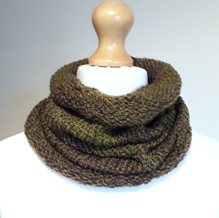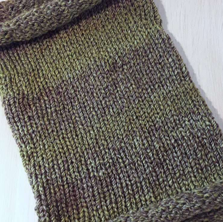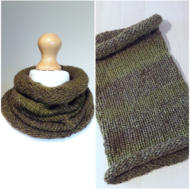This beautiful neck warmer has been knitted from soft, chunky acrylic yarn.