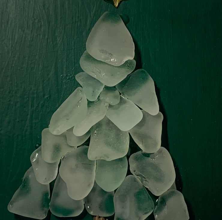 I have been exploring ways to use the seaglass I collect, looking beyond the jewellery I usually make. This is one of two trees I have made, initially for the Christmas season, but I do think this would look lovely on a wall at any time of year. I hope you will agree.