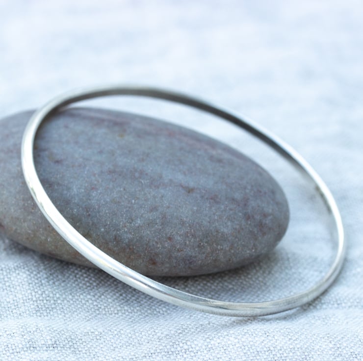 Elegant and simple, this slim silver bangle is handmade from 3mm wide recycled Sterling silver.