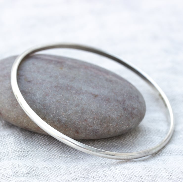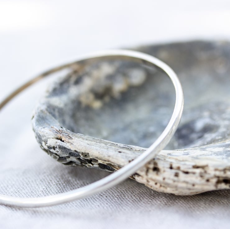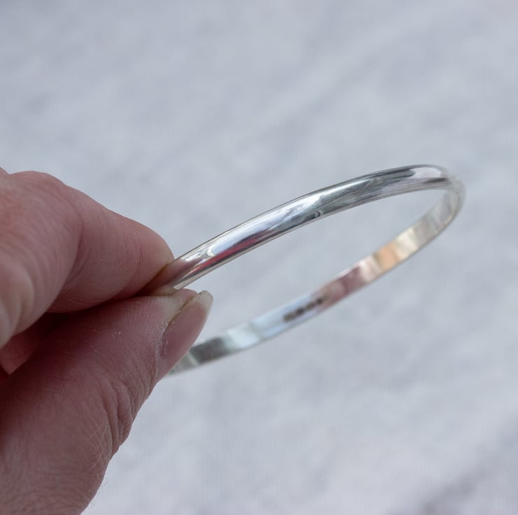 Solid silver bangle handmade from 4mm wide recycled Sterling silver 'D' shaped wire.