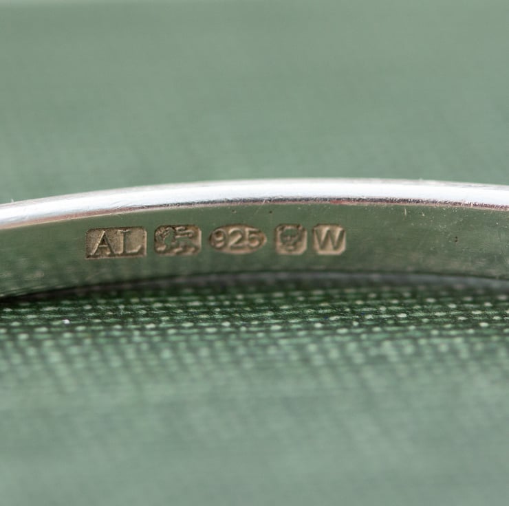 This bangle is hallmarked by the London Assay Office and has my maker's mark.