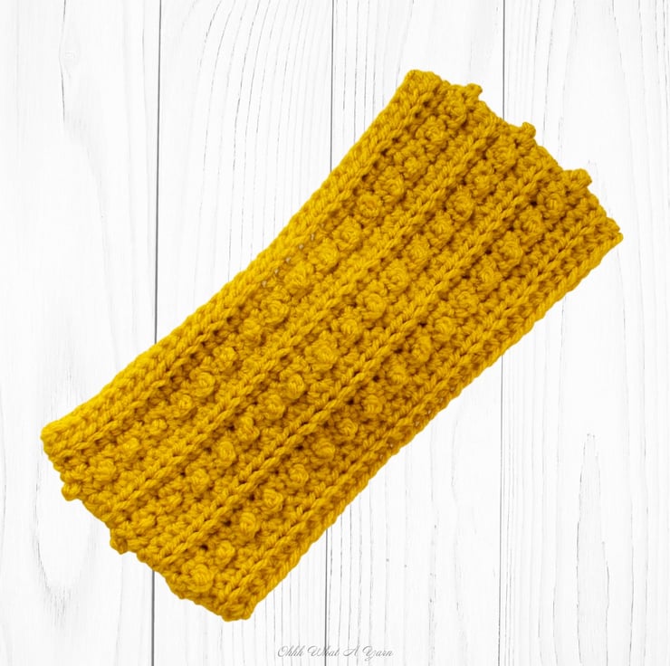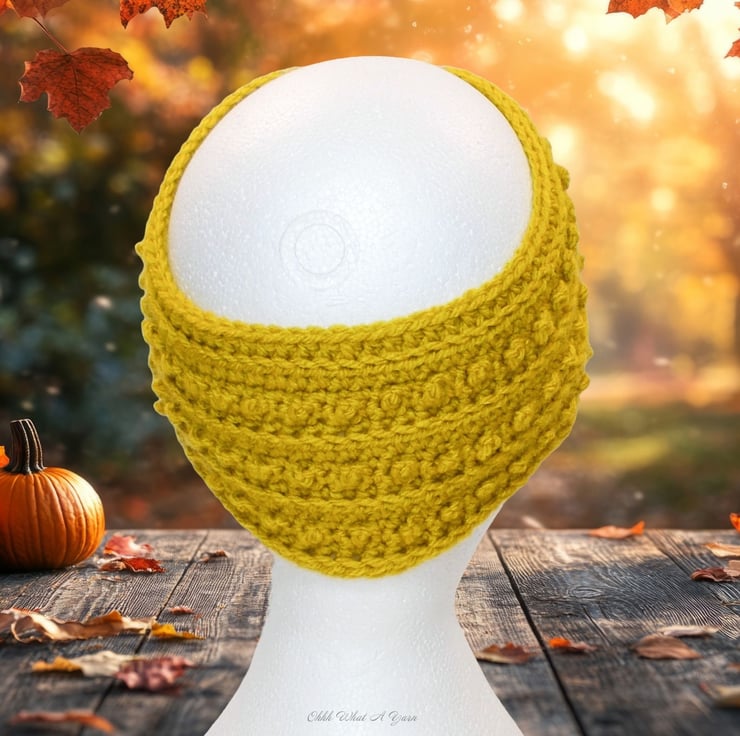 This cosy gold one size ladies ear warmer/headband has been crocheted using a gorgeous 100% acrylic aran weight yarn.