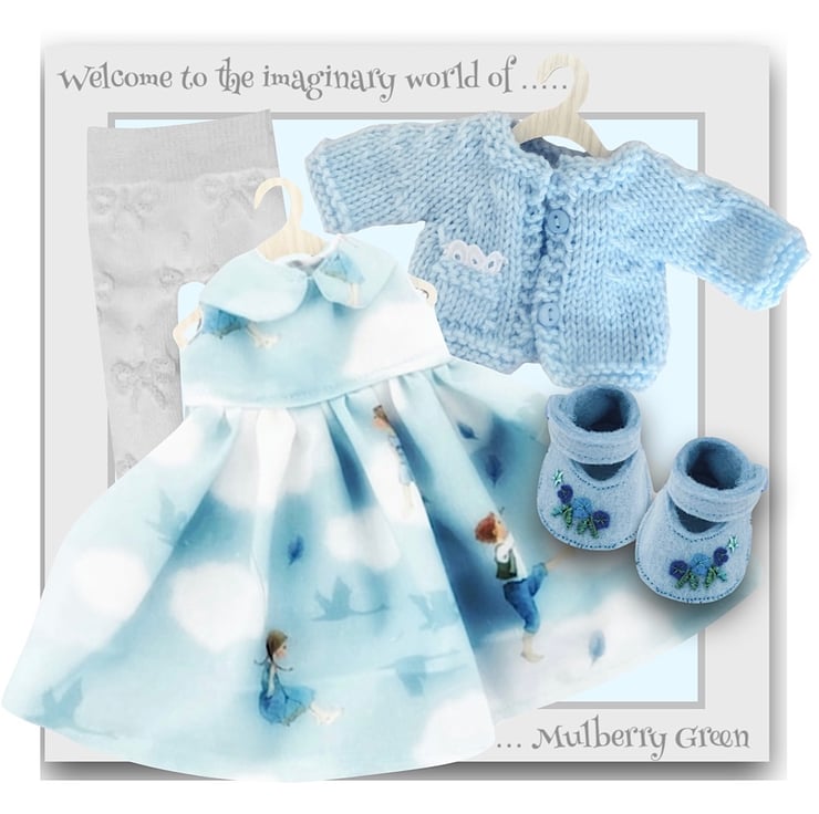 Mulberry Green is all about a time, now gone, but not so very long ago, when children had a great deal of freedom to explore their surroundings and use their imagination in play. A time when the world moved at a slower pace and things were made to last. To celebrate this heritage, wherever possible, I use traditional crafts and materials to create my dolls and outfits.