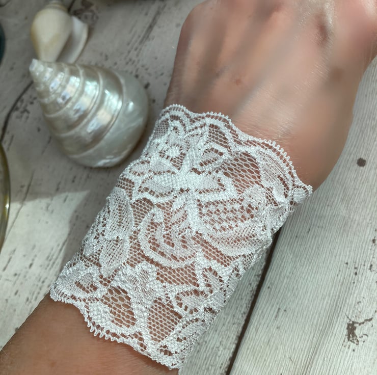 Lovely pretty off white lace stretch bracelet. Ideal for a wedding.