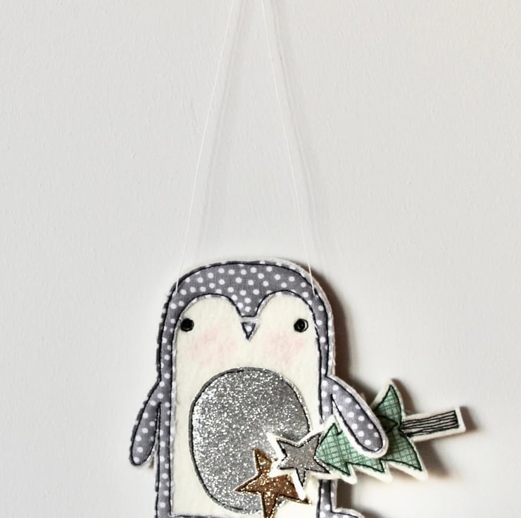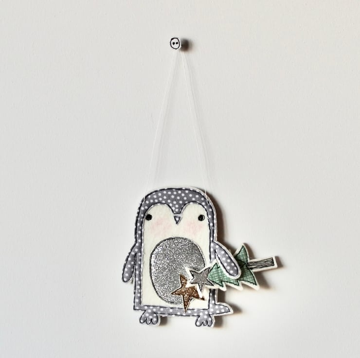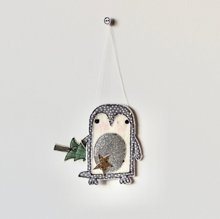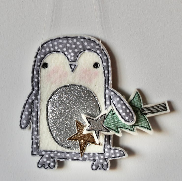 With a sparkly tummy and carrying a Christmas tree; Mr Penguin is ready for the festivities!