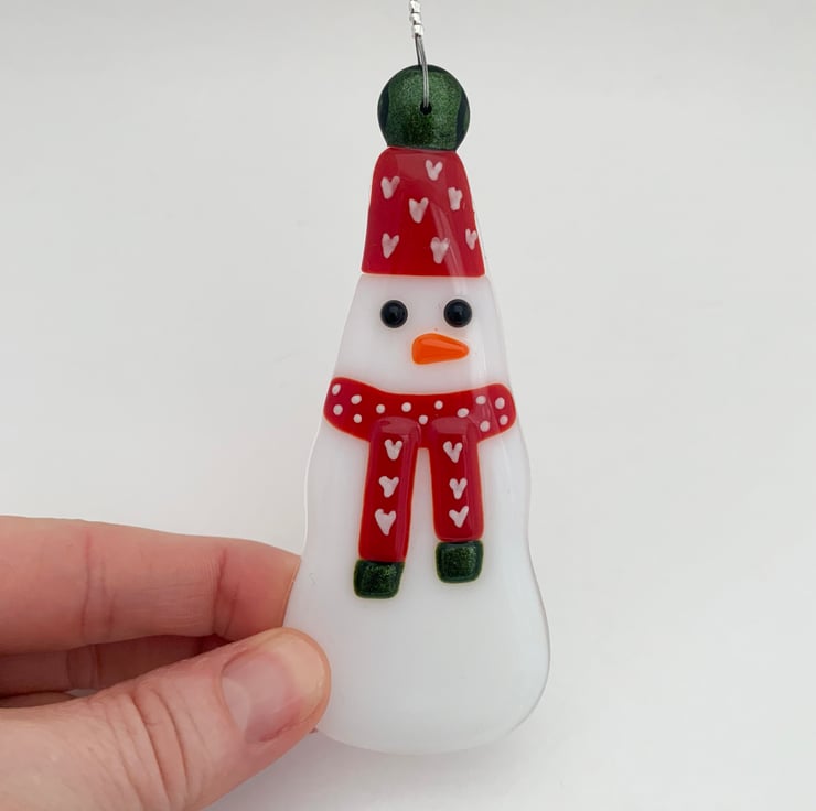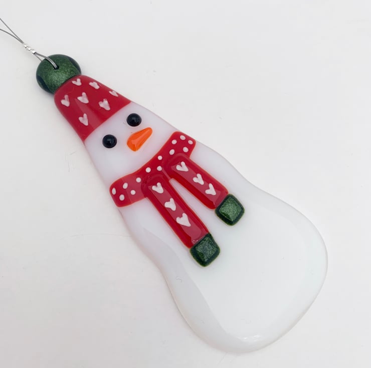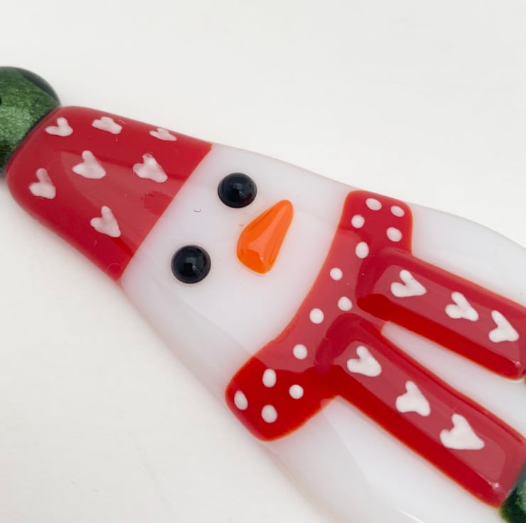 Fused glass snowman decoration. These look lovely hung on a Christmas tree and make a great gift.
